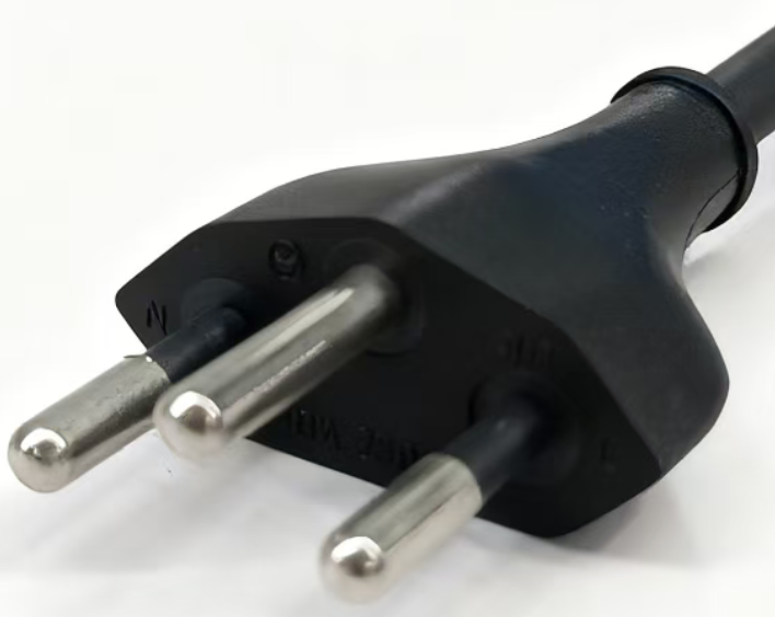 Type J plug has two round pins and one grounding pin. Although it looks similar to the Brazilian Type N plug, it is not compatible with Type N sockets, as the distance from its grounding pin to the center line is greater than that of Type N.